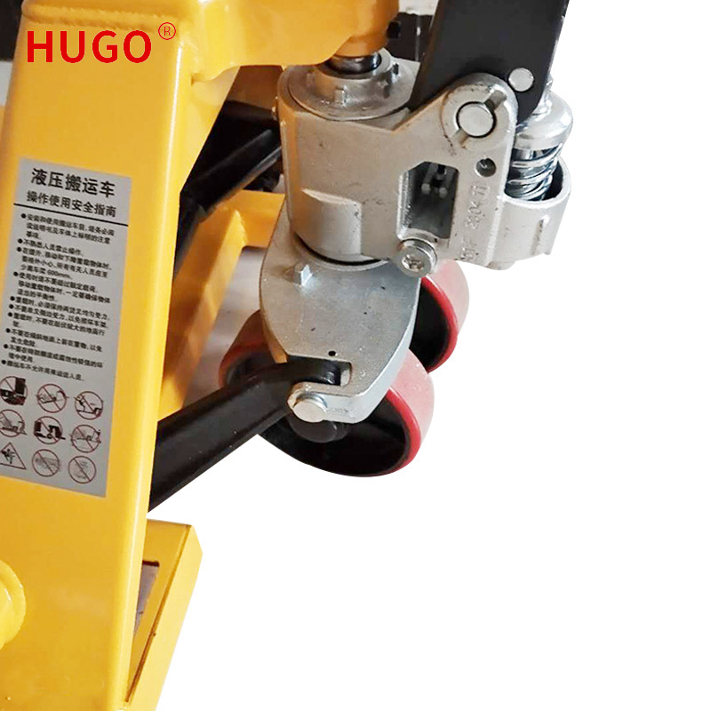 4. Направляващите и товарните колела са проектирани с висококачествени компоненти и лагери, за да осигурят ниско съпротивление при търкаляне. Нашият палетен крик за продажба има повече опции по ваш избор. Като пластмаса, найлон Pu и каучук..